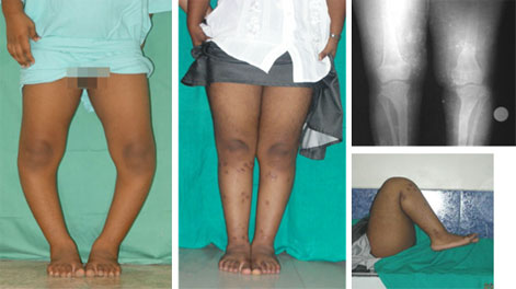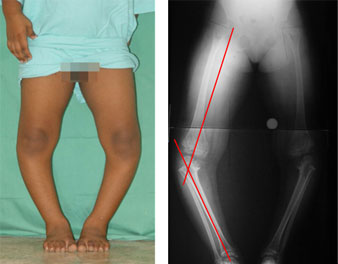 The deformity in the proximal tibia was corrected using the gradual correction using Ilizarov ring fixator and hinges.