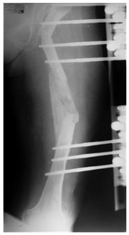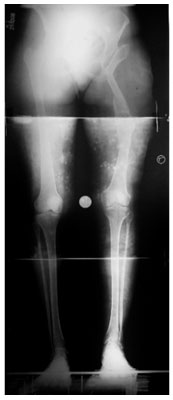 The full length x-ray after removal is showing good correction. The tibia also has some shortening, which was addressed in the 2nd stage.