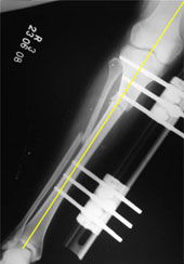 The x-ray picture here shows the fibular and tibial osteotomies.